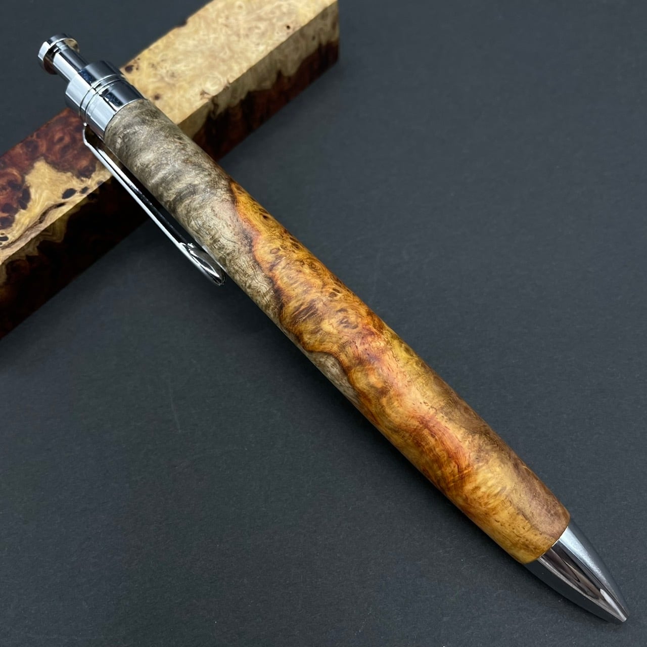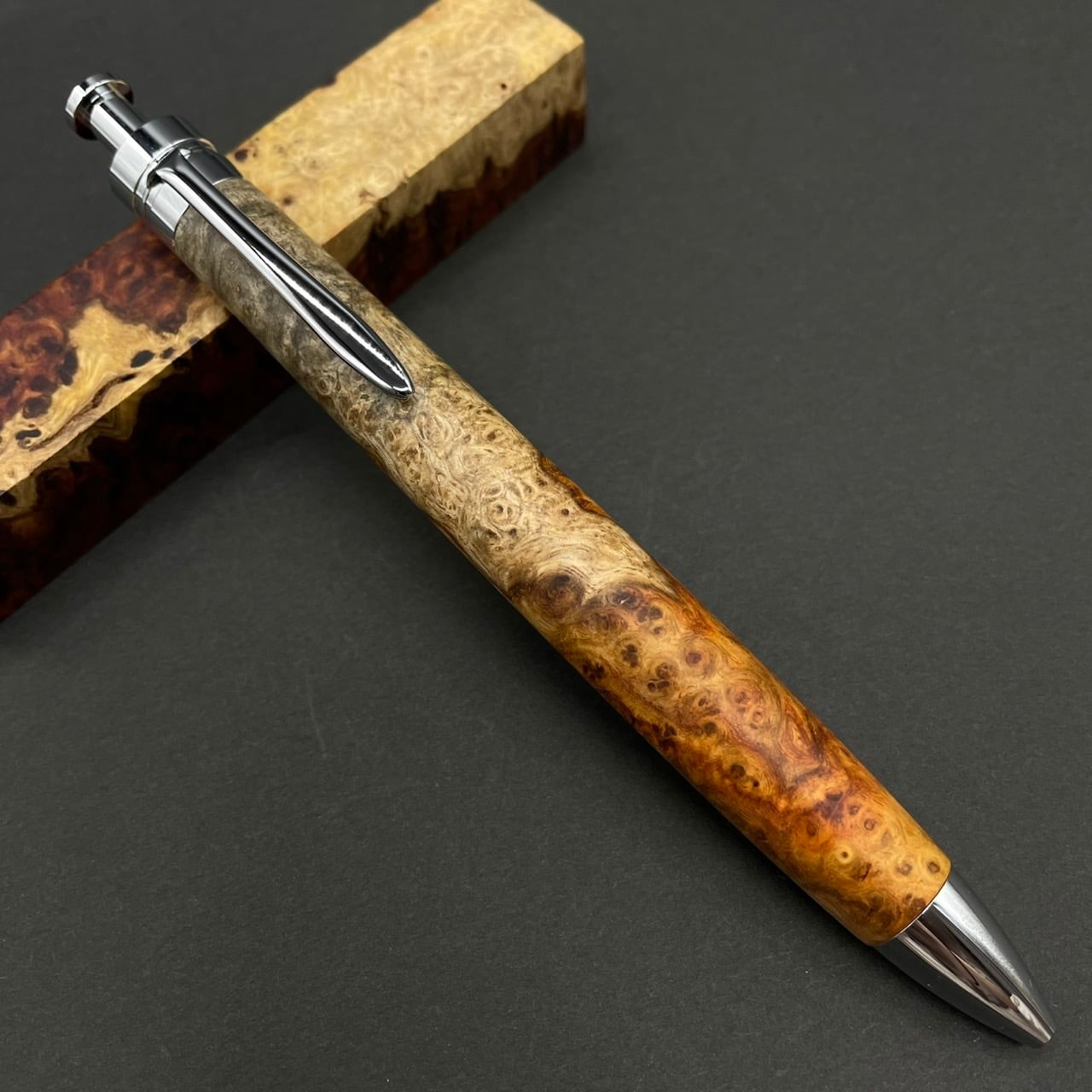【極上杢 アンボイナバール 紅白】木軸ペン 三神シャープ1100 / 三神ボール1000
