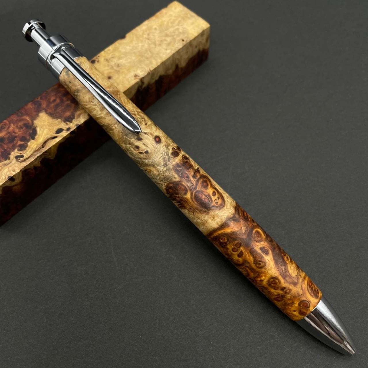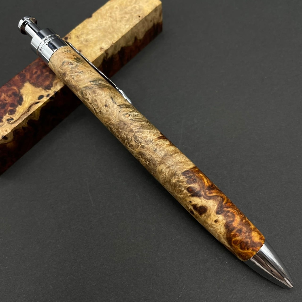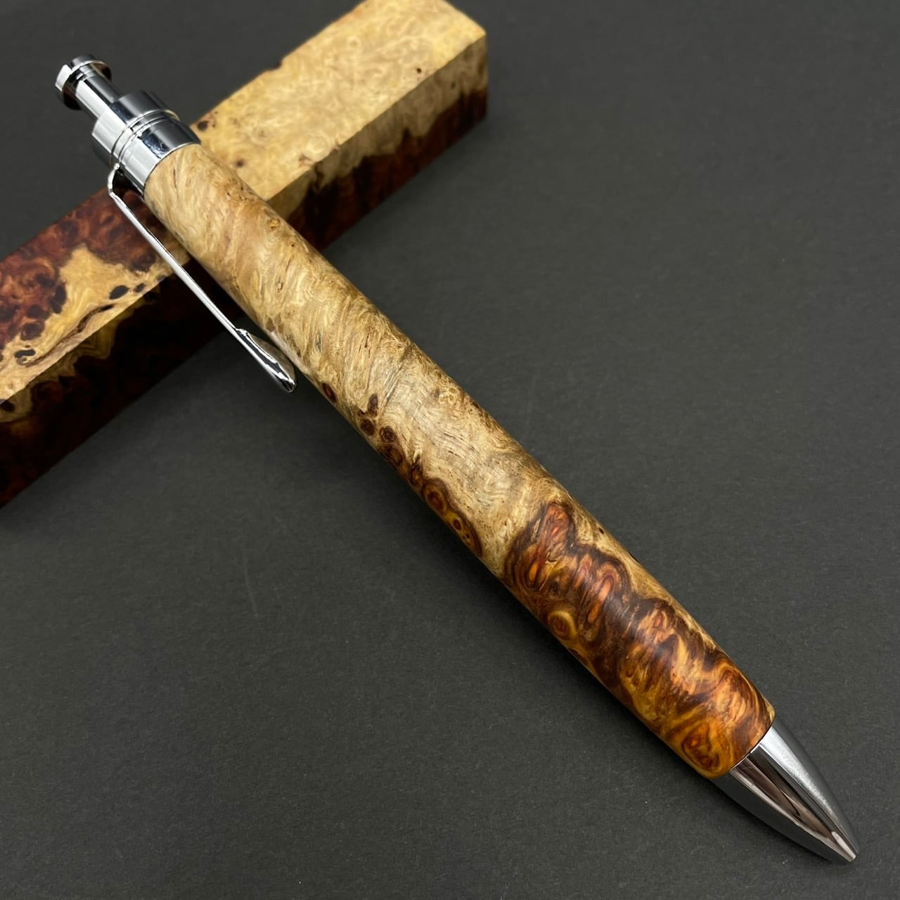 【極上杢 アンボイナバール 紅白】木軸ペン 三神シャープ1100 / 三神ボール1000