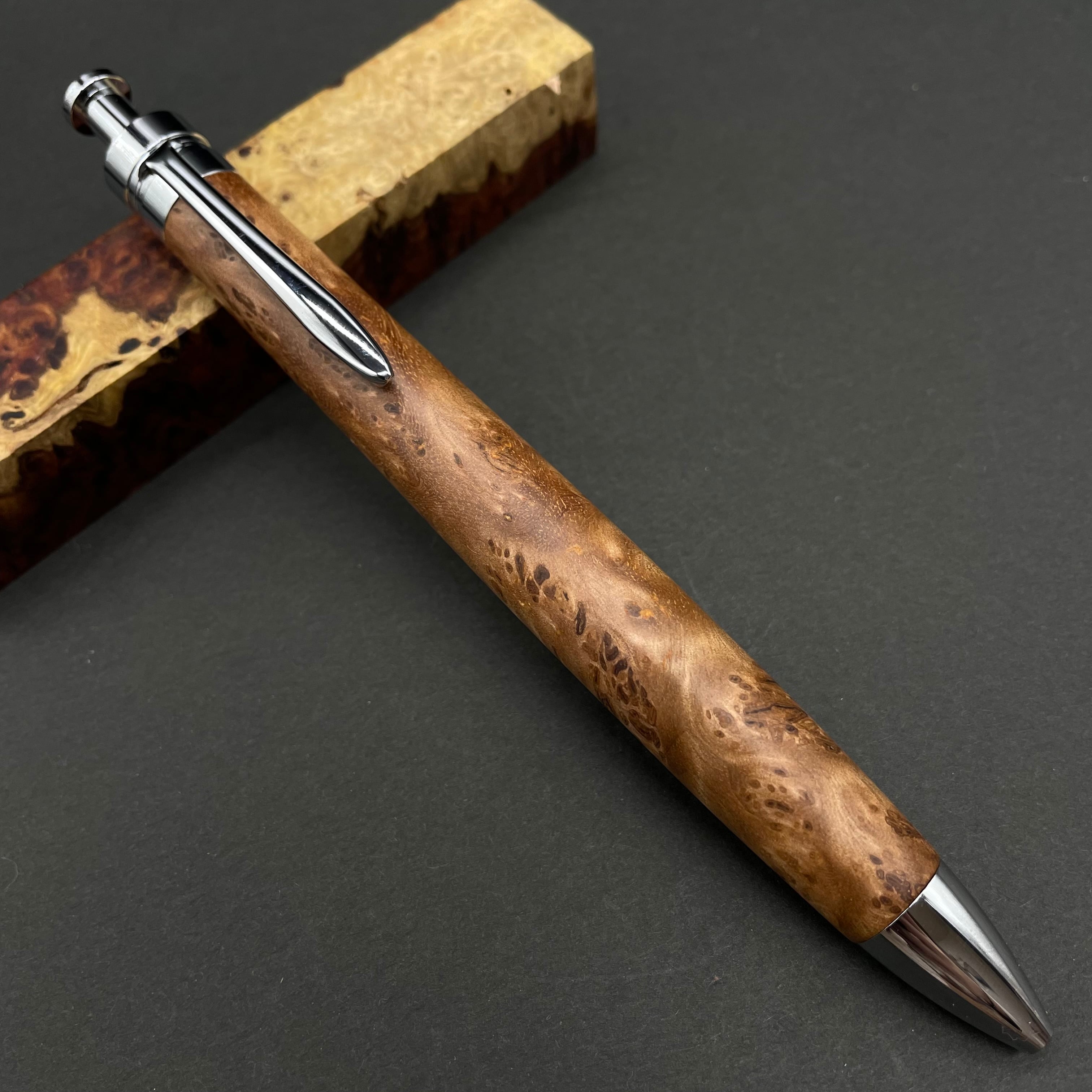 富士山のふもとで、主にインドネシアの良質な瘤材を使用し、木軸ペンをはじめとした木製小物を製作しております。