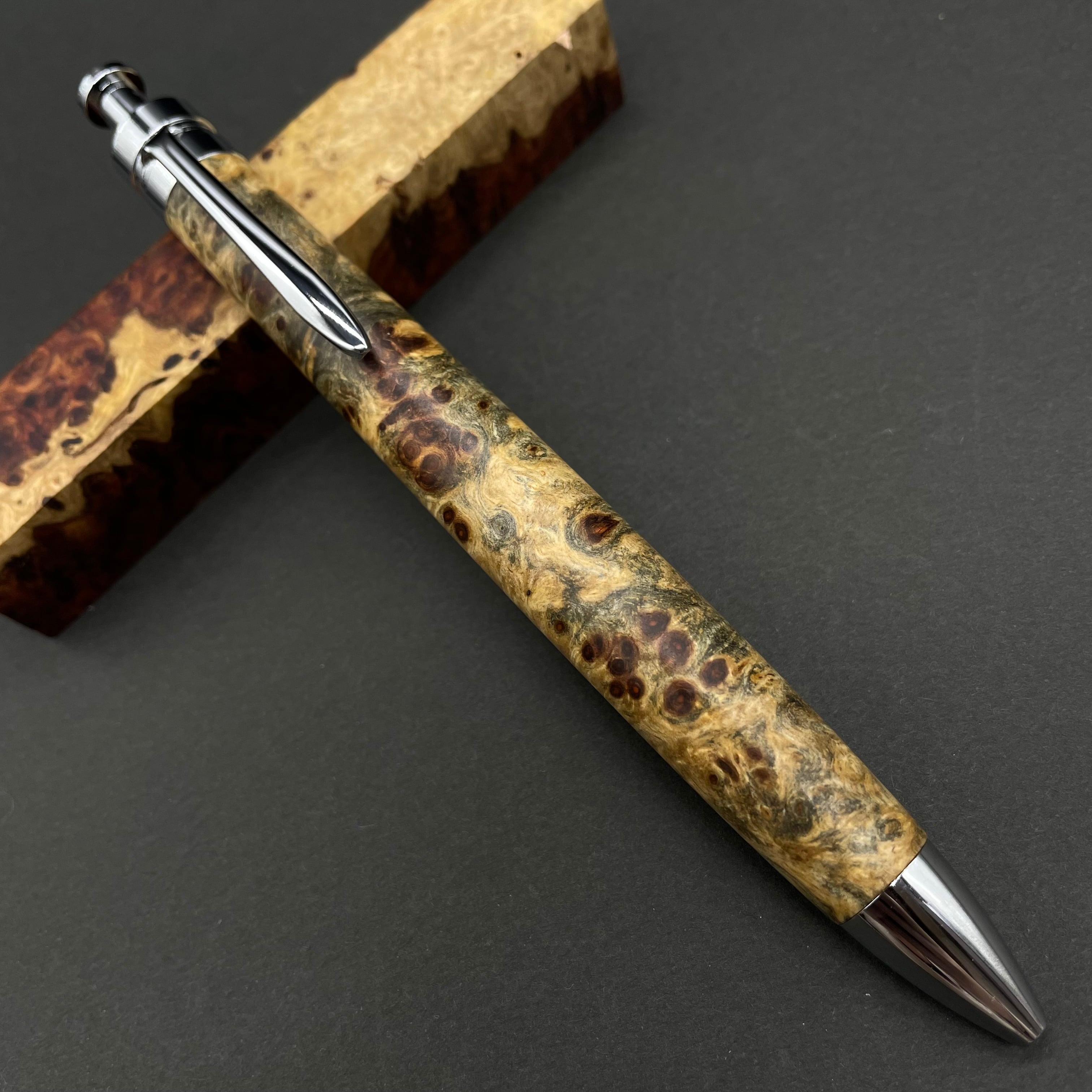 富士山のふもとで、主にインドネシアの良質な瘤材を使用し、木軸ペンをはじめとした木製小物を製作しております。