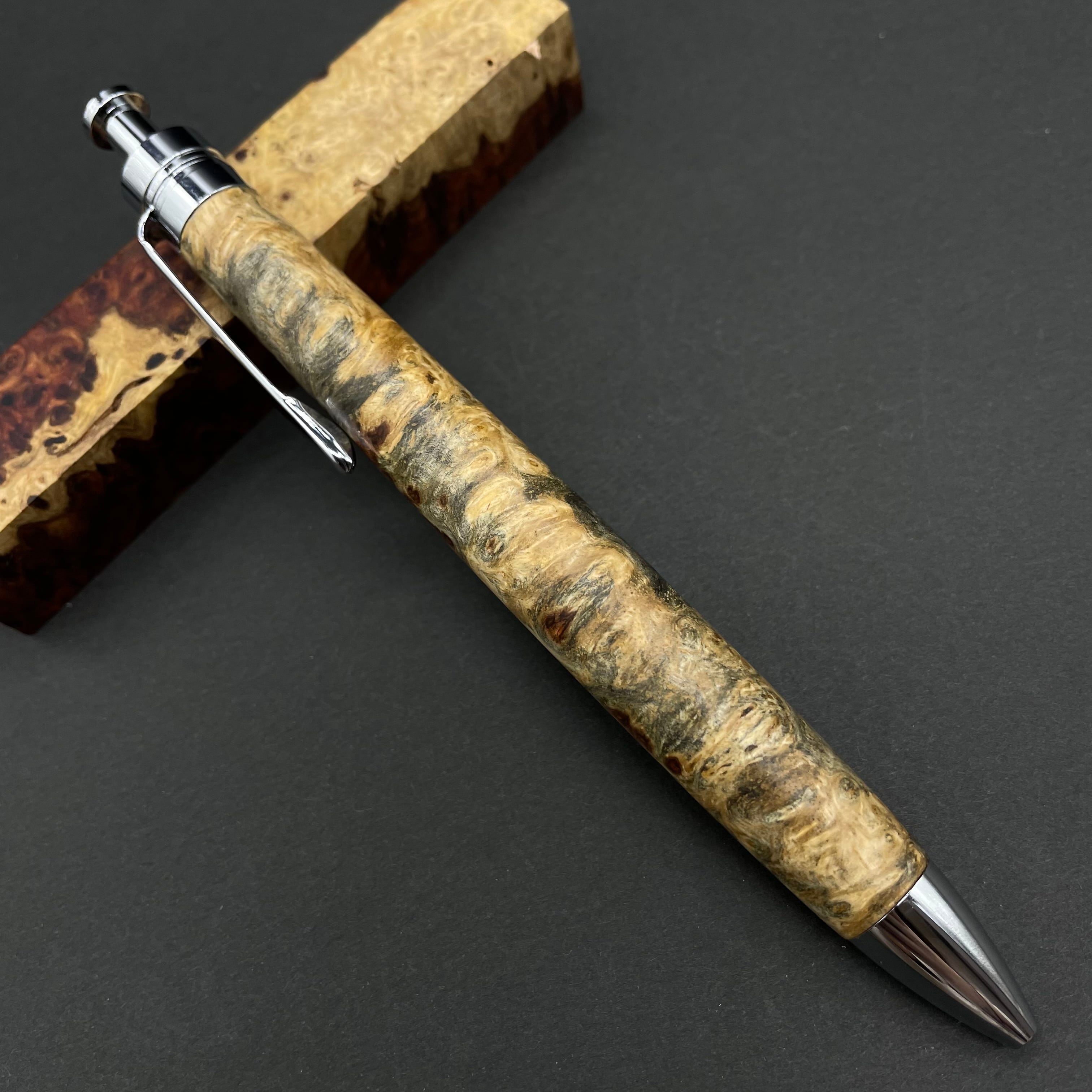【アンボイナ 青瘤】木軸ペン 三神シャープ1100 / 三神ボール1000