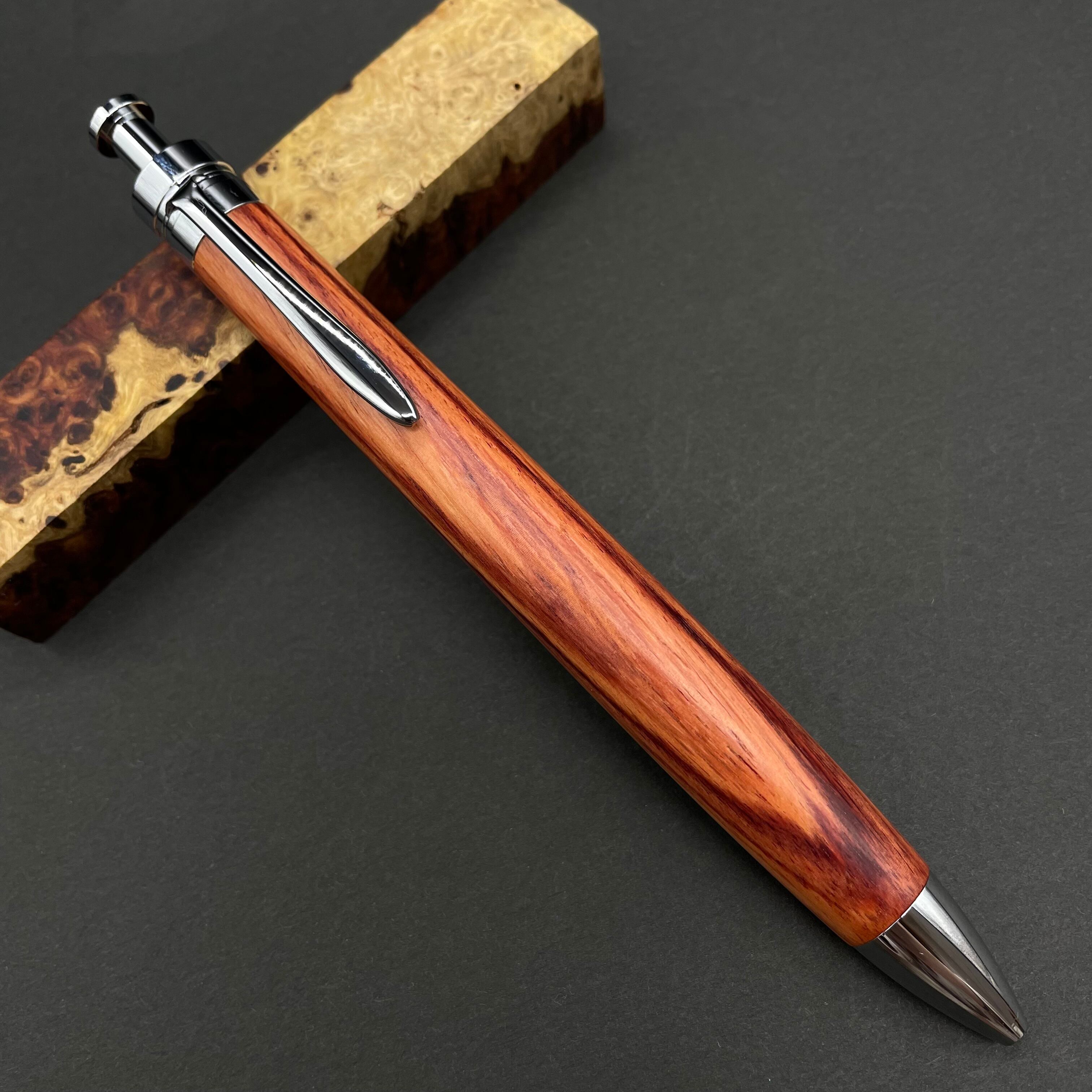 富士山のふもとで、主にインドネシアの良質な瘤材を使用し、木軸ペンをはじめとした木製小物を製作しております。