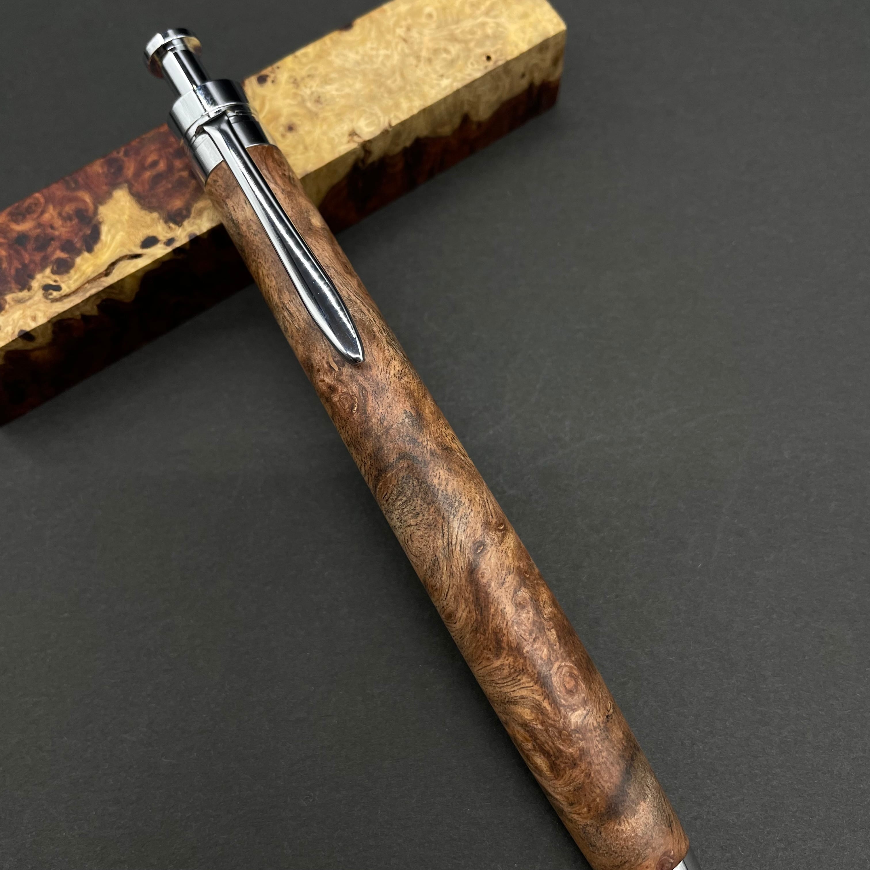 富士山のふもとで、主にインドネシアの良質な瘤材を使用し、木軸ペンをはじめとした木製小物を製作しております。