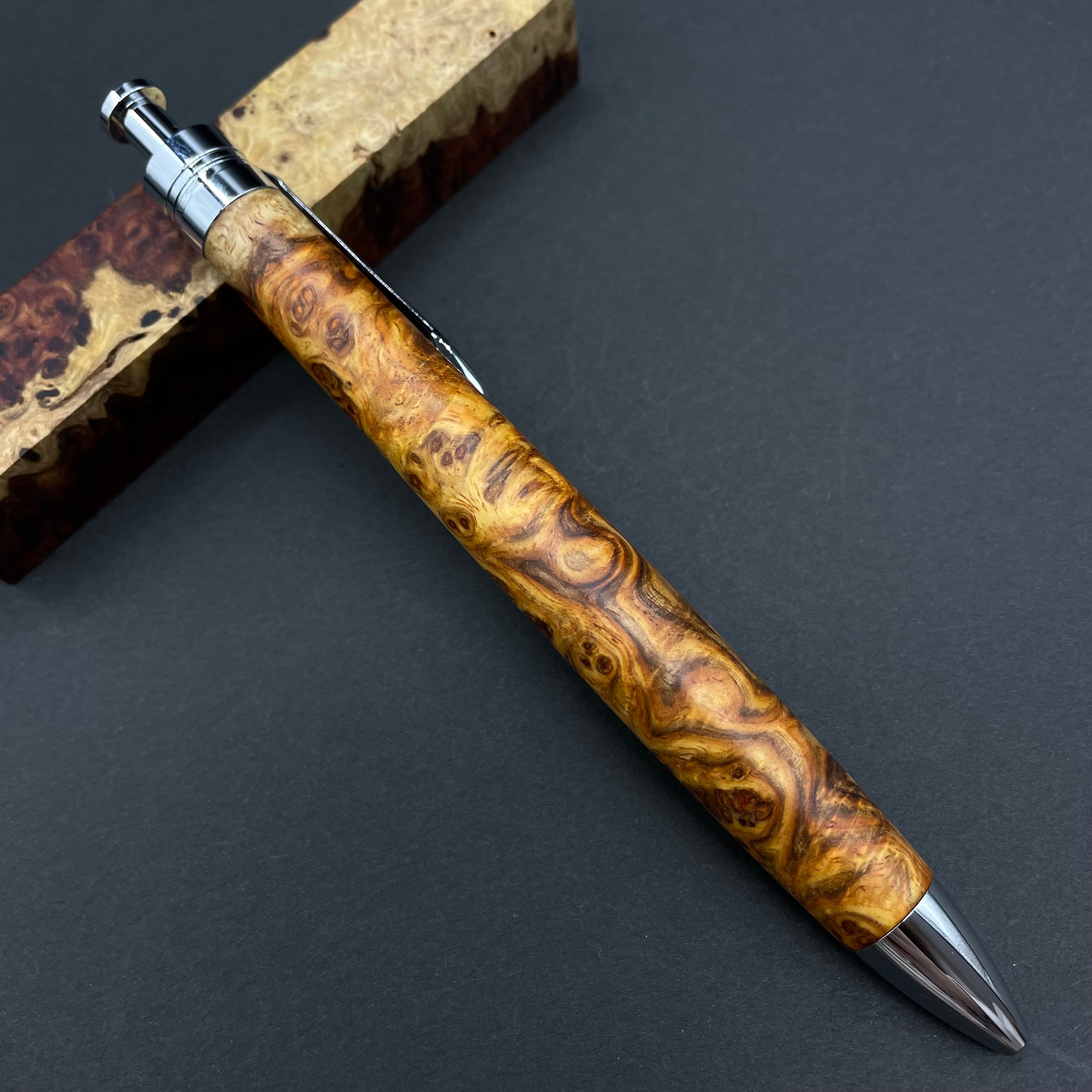 【極上杢 アンボイナバール 紅白】木軸ペン 三神シャープ1100 / 三神ボール1000