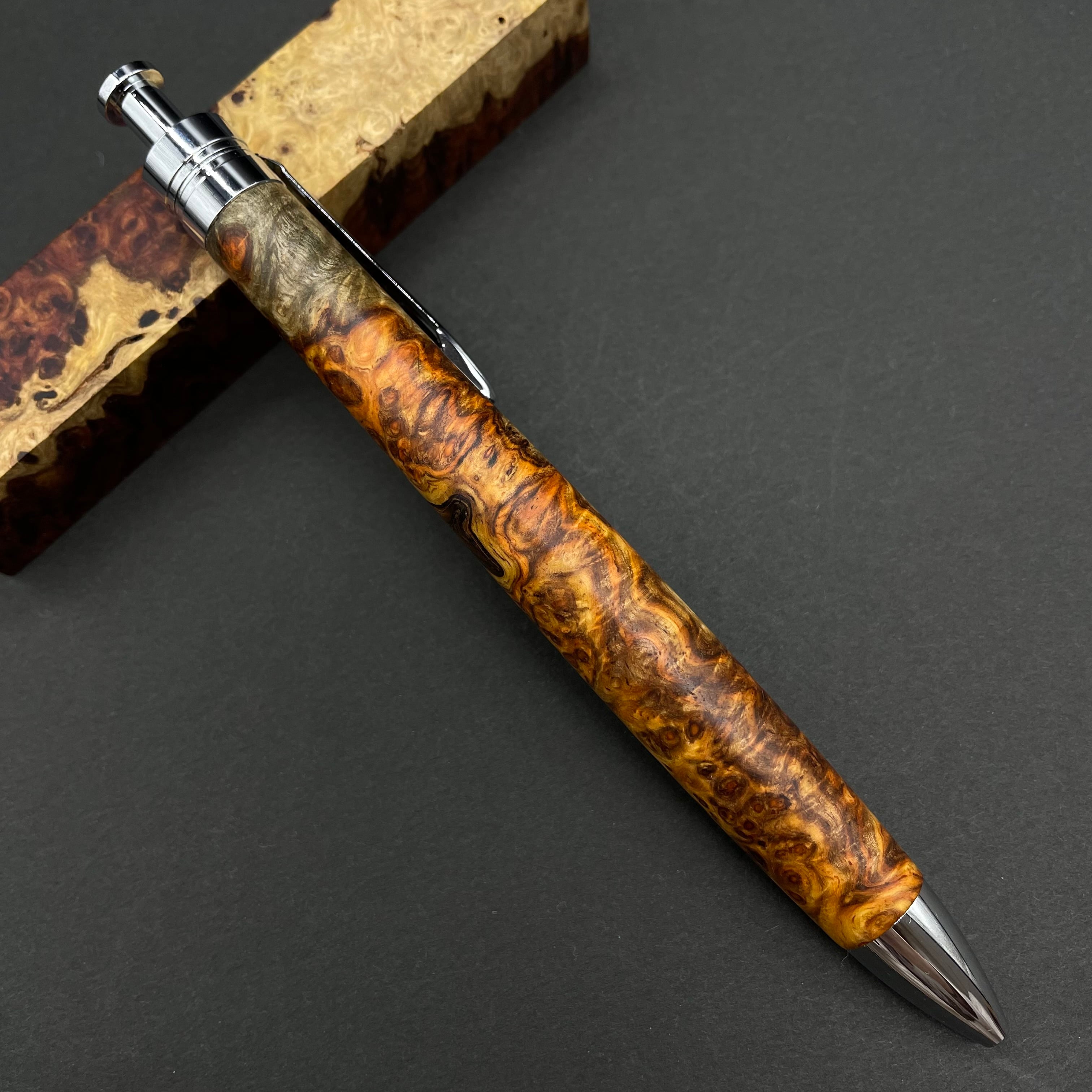 【極上杢 アンボイナバール 紅白】木軸ペン 三神シャープ1100 / 三神ボール1000 入り皮あり