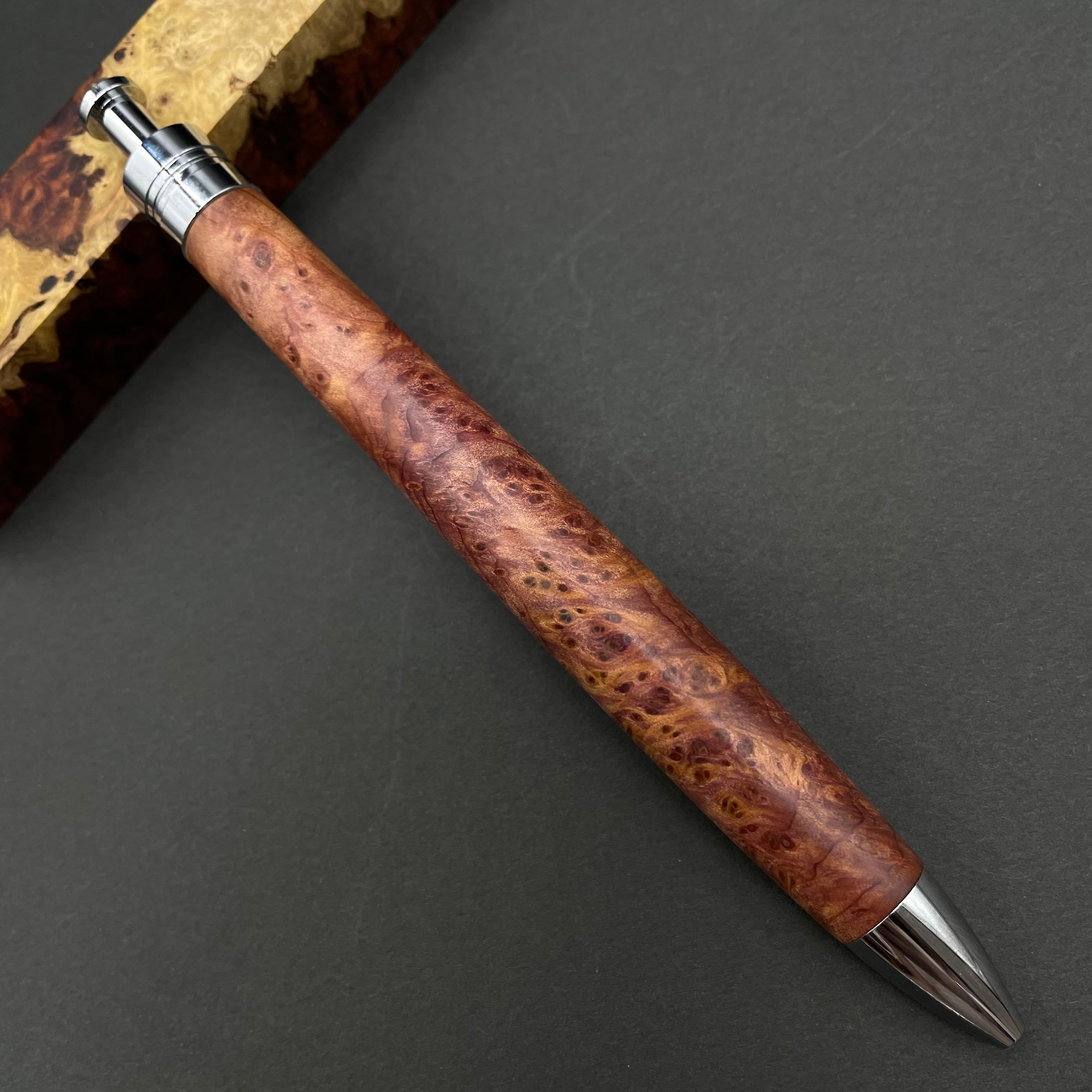 富士山のふもとで、主にインドネシアの良質な瘤材を使用し、木軸ペンをはじめとした木製小物を製作しております。